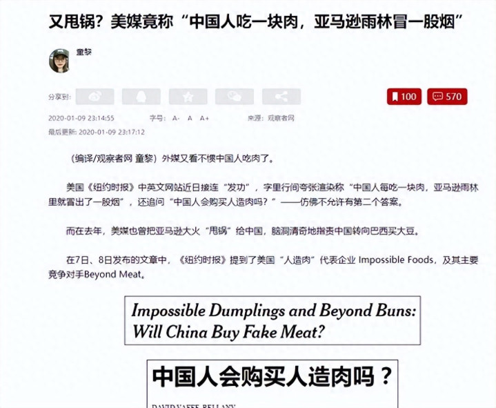 2020年1月拉斯维加斯CES上,美国人造肉公司Impossible Foods推出植物猪肉和香肠,该公司老板帕特·布朗直接把矛头对准中国市场。他说中国是肉类消费大国,土地不够养那么多动物,如果中国人再多吃点肉,慢性病爆棚,医疗系统根本扛不住,到2030年光健康支出就多出140亿美元。