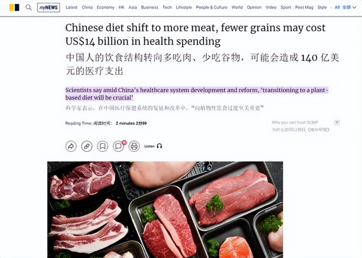 外媒: 中国人多吃口肉, 中国医保就遭不住了